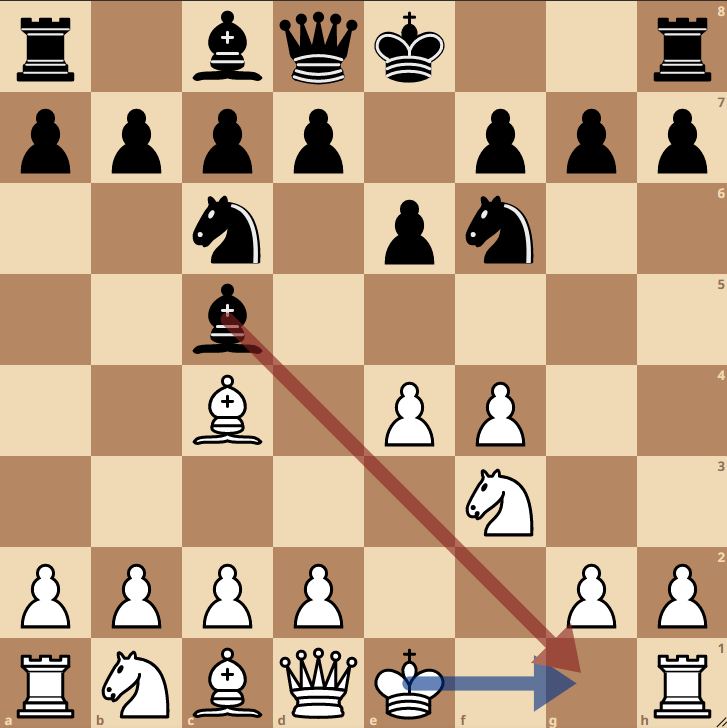 …I feel the king should be allowed to capture on g1 when castling. To further the argument, and this is where the discerning reader may begin to laugh at my logic if they haven’t already, I believe the following castling scenario should also be legal: